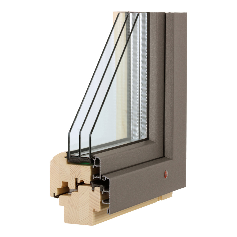Vysoce odolné okno kombinující dřevo z vnitřní strany a hliník zvnějšku. Zasklení trojsklem, které se díky jedinečnému systému obejde bez použití silikonu.